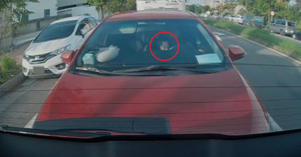 影/副駕女等紅燈「低頭趴駕駛座」 苗栗男8秒腿軟撞前車!她急戴口罩