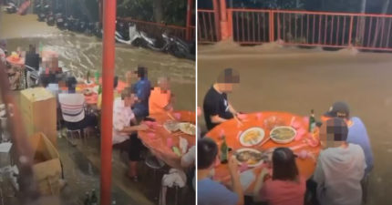 暴雨狂灌嘉義!民眾淡定「坐水中吃流水席」