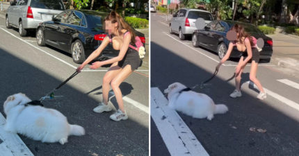 斑馬線遇「正妹跟狗拔河」 他越等越有耐心:要禮讓行人