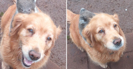 阿金在院子玩「突戴上灰色領巾」 主人叫過來被融化:頭一次看到