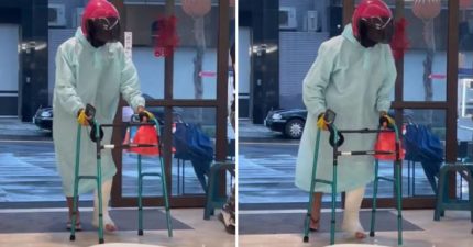 雨天驚見外送員「打石膏+助行器」送餐 網嘆:都是為了生活