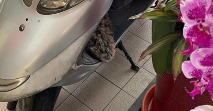 貓趴機車踏板「毛茸茸露半截」超萌 他走近卻撸了個寂寞