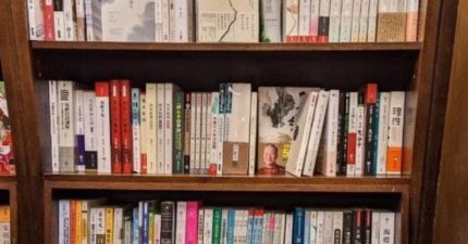 飲料隨手放書架 她一回神「瓶身融入書堆」愣:找不到