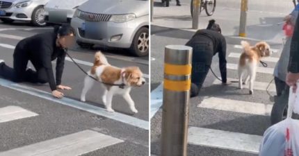 嫩妹「狗繩繫自己脖子」大街上爬行 網歪樓:主人的任務