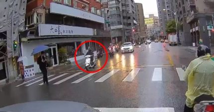 桃園男綠燈走斑馬線「機車直衝不讓」 下秒1反擊網嗨:會流行
