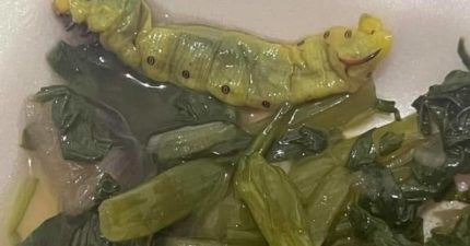 燙青菜吃到「超完整綠毛蟲」 細看1亮點愣:入味了