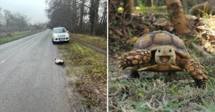 駕駛驚見「巨大陸龜翻肚倒地」 警方到場救援傻眼了