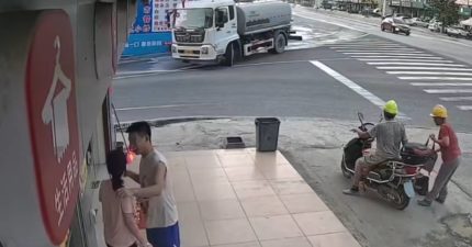 路邊摟抱遇「灑水車經過」 男友瞬間反應她傻眼