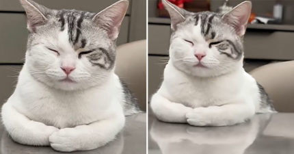 影/貓咪靠桌邊睡覺好優雅 人類「一看桌面下」愣:不科學