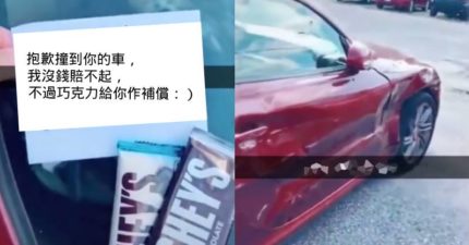 影/車被撞凹!肇逃者留下「2片巧克力」:我賠不起
