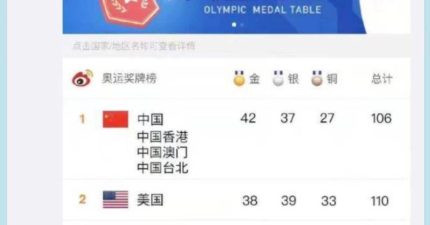 美國「1金之差」超越中國佔奧運榜首 小粉紅不依:要加台灣香港