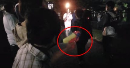 影/奧運聖火傳一半 歐巴桑突「拔水槍狂噴」想滅聖火