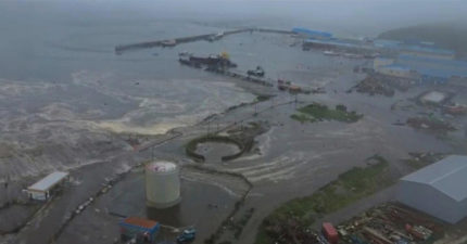 影/73年來最強震「海嘯淹沒港口」 空拍畫面曝