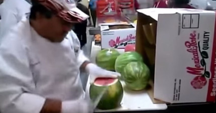 等他雕刻西瓜結束後,你才會知道這世界上居然有這等級的神人。