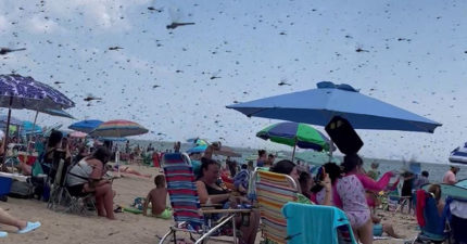 天有異相?「上億隻蜻蜓」湧入沙灘 遊客尖叫逃命畫面曝