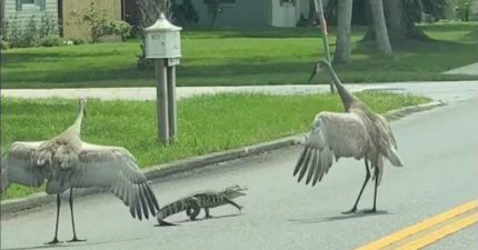 3大鶴展翅「護送鱷魚過馬路」?細看才知不對勁 恐怖真相曝