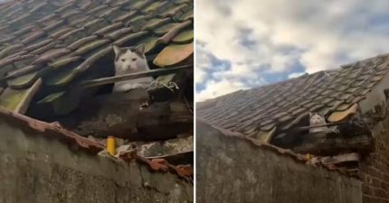 屋頂上有可愛貓探頭!他靠近一看笑噴:距離美是真的