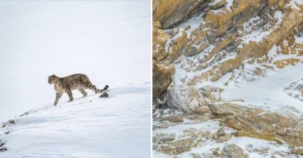 有雪豹在玩躲貓貓!網全眼花找不到 攝影師驚:連我都沒發現