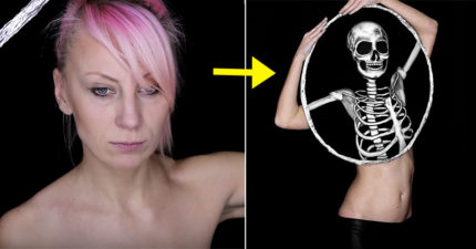 她套一個圓圈在「上半身」,不久後變成「X光」照到的骷髏! (影片)