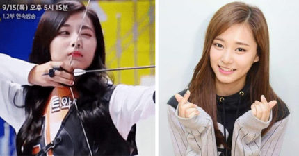 周子瑜在韓國偶像運動大會上現出弓箭技巧,箭飛出去後「頭髮」讓粉絲瞬間爆炸!