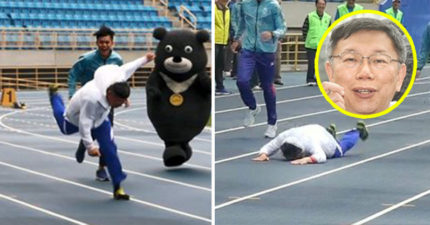 柯市長測試新跑道突然「飛撲在地」,自己神回:「跑道品質好,有彈性!」