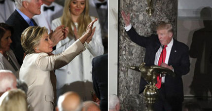 希拉蕊苦臉參加就職典禮,宴會上川普要求「全體致敬」才看到笑容!