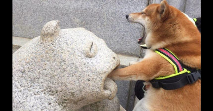 柴柴「手手被石獸咬住」痛到張嘴尖叫,超有戲表情「犬界奧斯卡」萌翻網路!加碼:10張更搞笑照片!