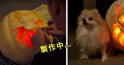 神人打造超猛「博美犬南瓜雕刻」 跟真狗狗放在一起超神似…關燈後美炸!