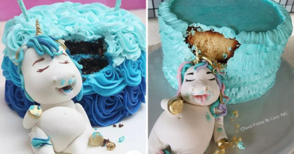 史上最萌「偷吃蛋糕的3D獨角獸蛋糕」,一臉「吃飽喝足模樣」女生版讓人太揪心!