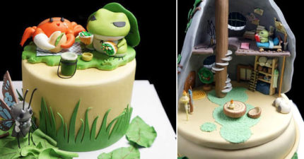 《旅行青蛙》也能吃了!「100%場景神還原」細緻翻糖蛋糕「看全景池塘可愛到不行」
