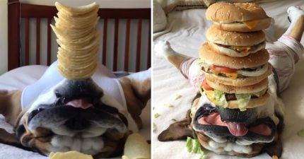 這隻鬥牛犬只要一睡覺,他的「下巴」就會出現驚人「食物疊疊樂」…