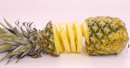 他教你如何把鳳梨拉開後,像這樣出現超吸睛的跟彈簧「螺旋切」鳳梨! (教學影片)