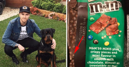 男子開心打開巧克力來吃後,咬4口後才發現吃到「中國小強」瞬間崩潰!