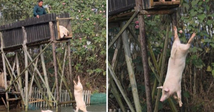 他每天逼這些豬「自殺」,跳越多越有價值!
