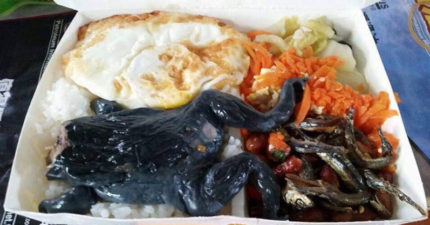 他看到價格不錯就點了「水雞便當」,打開盒子差點嚇傻。網友:「是茄子嗎?」