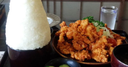 他因為很餓就到店裡點了一份「大份炸雞定食」,但店員送上餐點時他才發現是「日本怪談」陷阱啊!