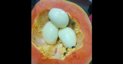 他剖開木瓜後卻發現裡面有「疑似寄生蟲卵」,最後超神網友解答讓大家都長知識了!