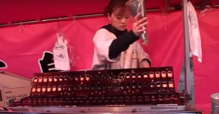 他將溶掉的銅倒到一個大麥克上面,第30秒那瞬間真的讓人感覺超享受!