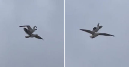 影/飛一半「海鷗騎乘海鷗」搭便車!牠回頭「爆氣抗議」:把我當Uber?