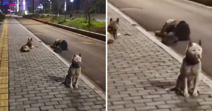 主人醉倒路邊!2忠心汪「分工守護他」:你顧手機、偶顧主人~