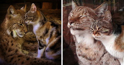 流浪貓誤闖動物園意外「跟山貓變好朋友」 館員:牠以為找到媽媽了!