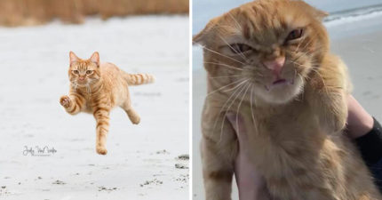 大橘喜歡海邊但「超恨海風」 沙灘爽睡「風一吹就翻臉」超怒