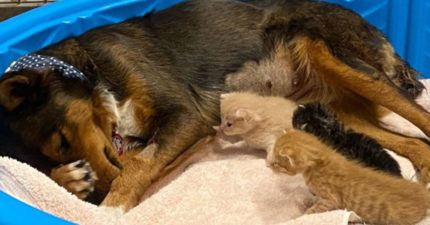 來不及救回「自己的寶寶」 狗媽媽把「孤兒小貓」當親生孩子養