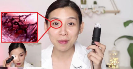 影/YouTuber超近距離觀察臉上彩妝 顯微鏡下「睫毛如恐怖異形」