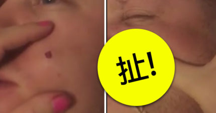 她逮到機會處理老公臉上「4歲的資深痘痘」,用力一擠竟噴出「最猛神龍」!