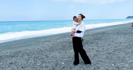 抱女兒海邊拍照 放大驚見「詭異人臉」!42歲女星急求救:是靈異現象
