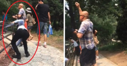 影/中國遊客石頭砸老虎「為了讓他動」 一旁女子幫腔:拿2個大的打他!