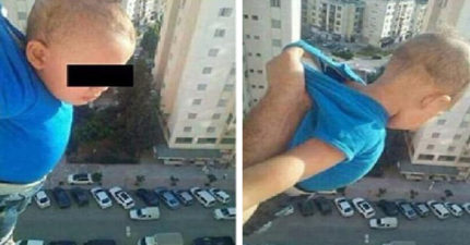 男子左手抓兒子「懸掛15層樓高窗外」討讚,右手點開直播…(影片)