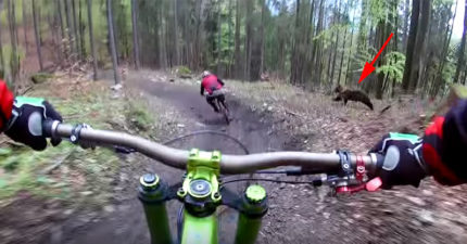 騎車騎一半以為有可愛的小動物衝過來,「靠越近變越大」下一秒變李奧納多…