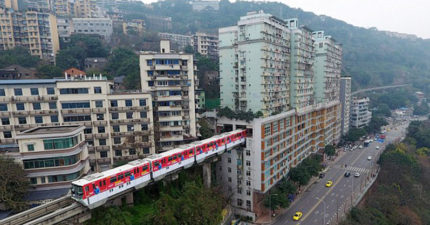 中國首座輕軌「穿越19層高大樓」直接開進家裡超神奇!外國網友酸:「為住戶感到可憐」慘被打臉!(影片)